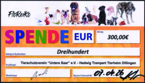 Der Tierschutzverein Untere Saar e. V. bedankt sich, im Namen der Tiere, ganz herzlich bei FloReiKo...