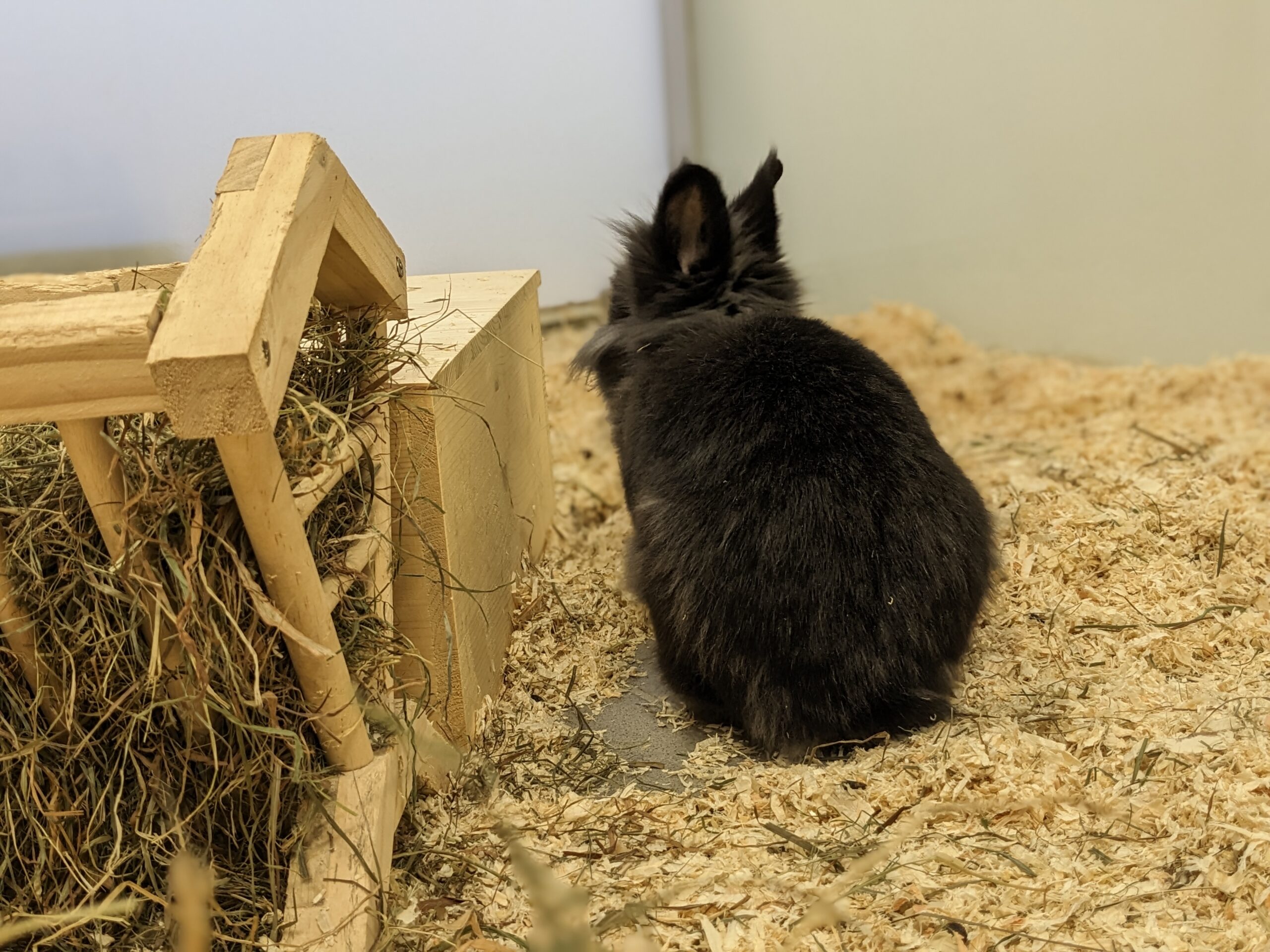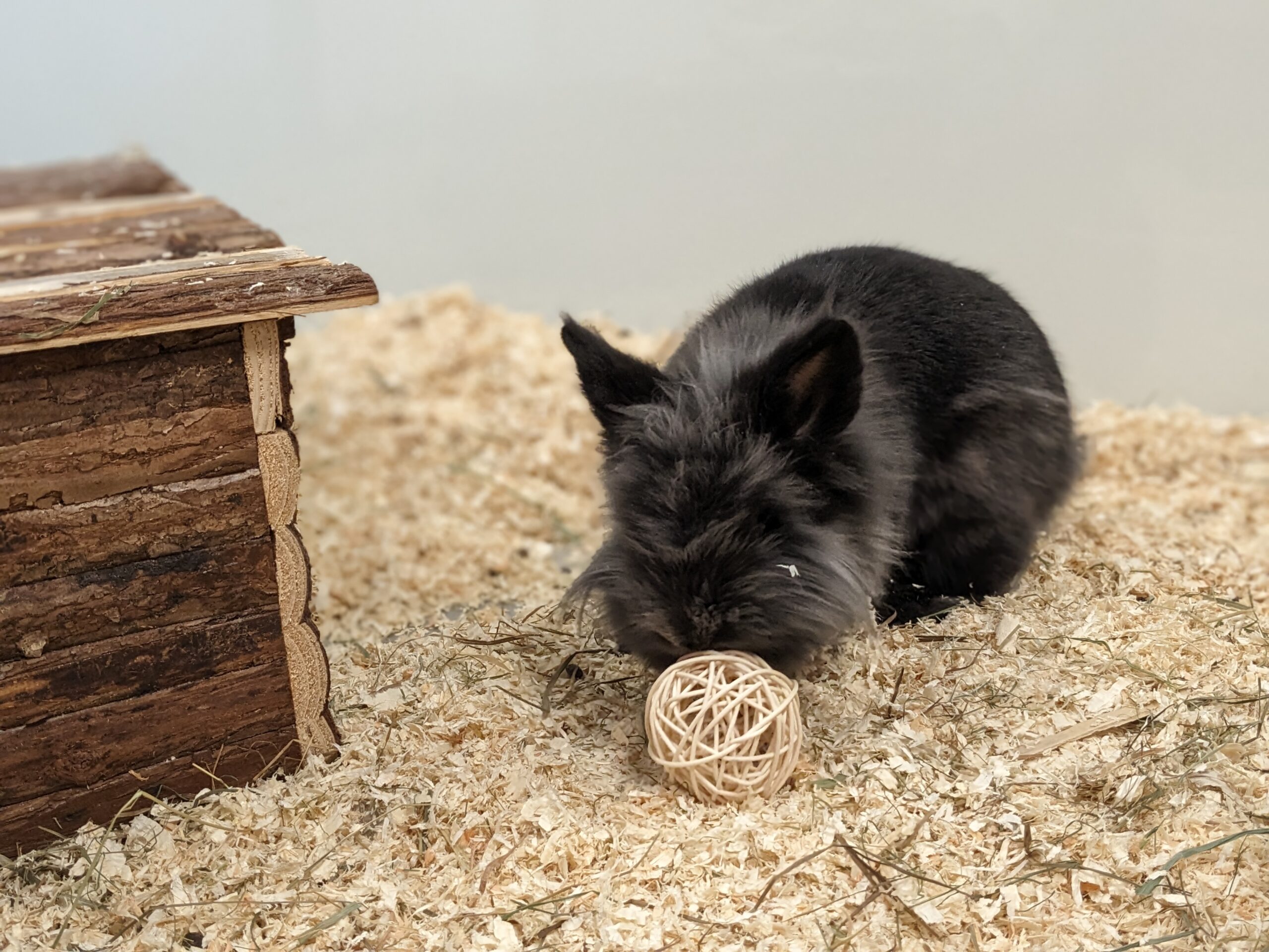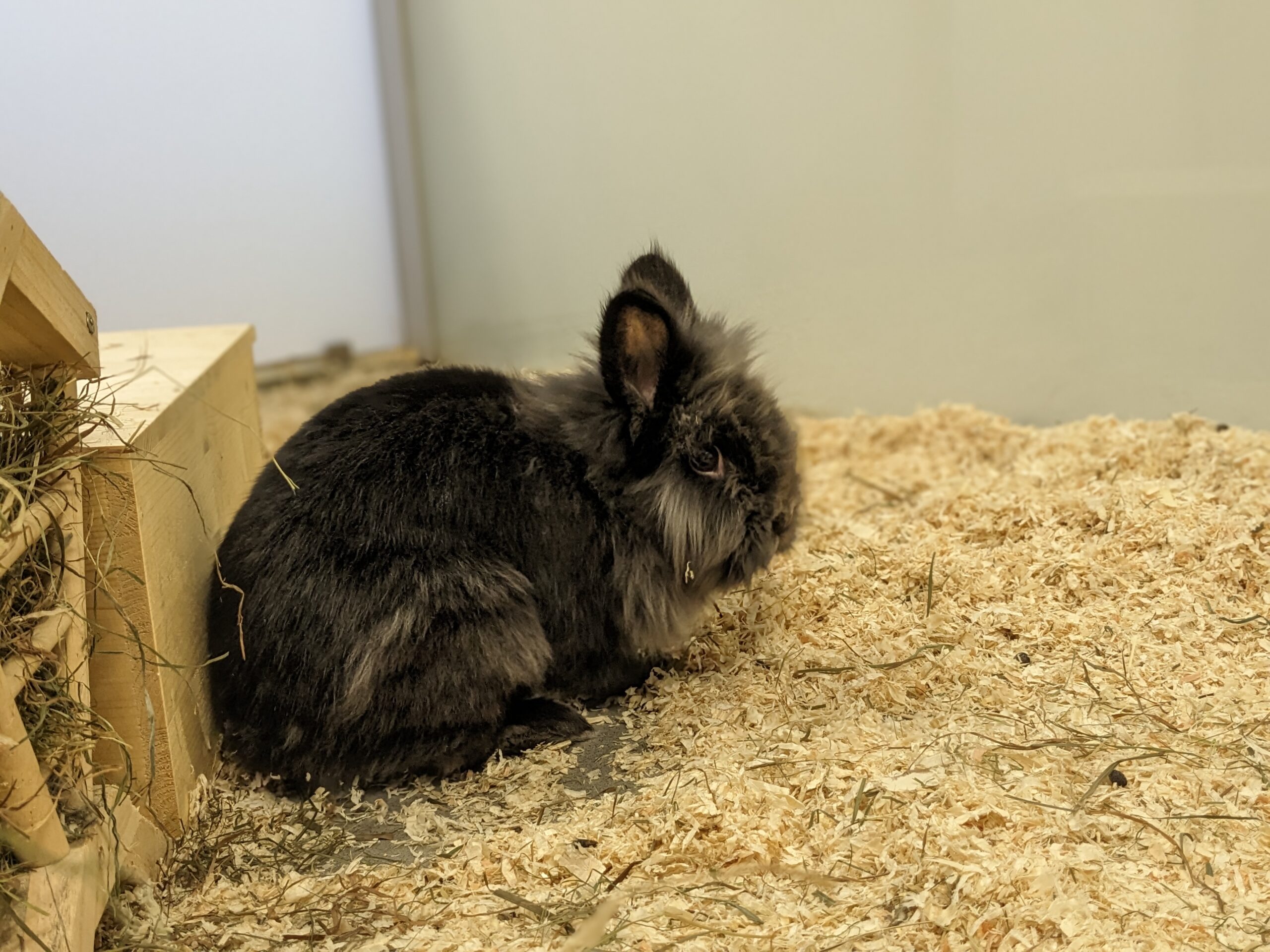 Elvis Löwenkopf-Angora-Mix Kaninchenmännlichkastriertgeboren: ca. 2021Innenhaltung: OKAußenhaltung in geeigneter Anlage: OK, ab Frühjahr 2024