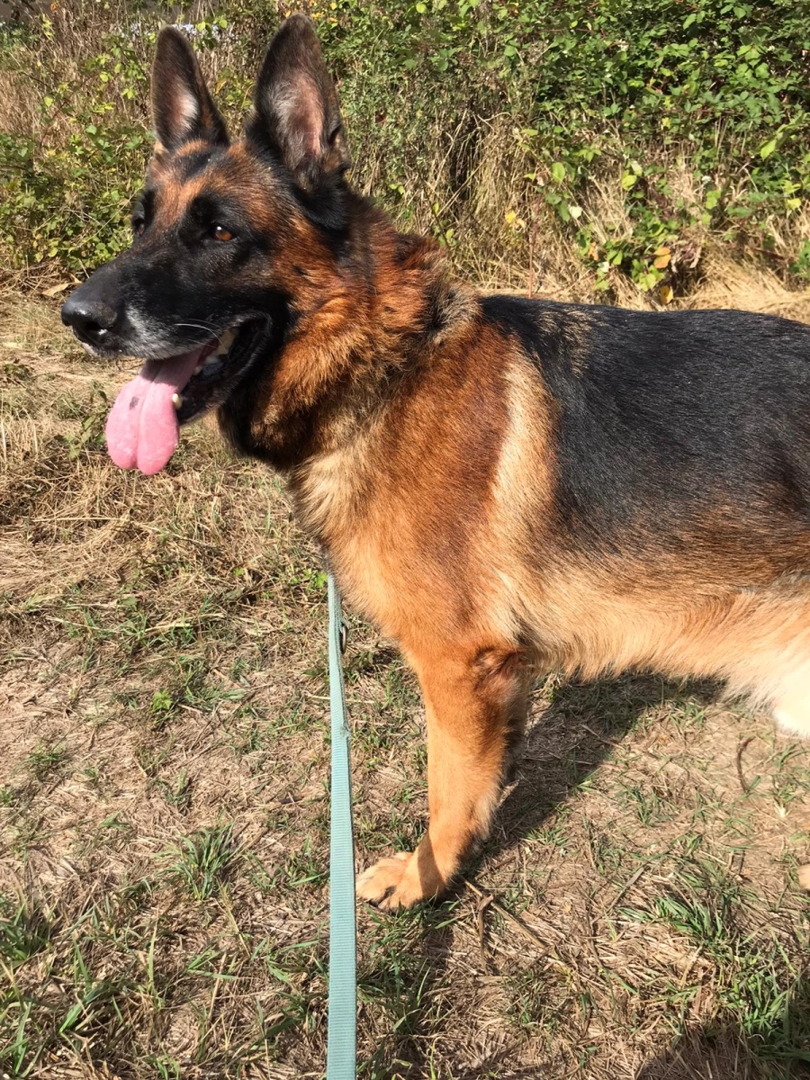 Schäferhundtypisch ist er bewegungsfreudig und freut sich sehr über jede Aufmerksamkeit, die er von seinen Menschen bekommt.