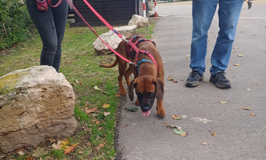 Beim Spaziergang genießt Maddy die Gesellschaft des ein oder anderen Artgenossen. Ob sie mit einem weiteren Hund zusammen leben möchte, entscheidet wie immer die Sympathie.