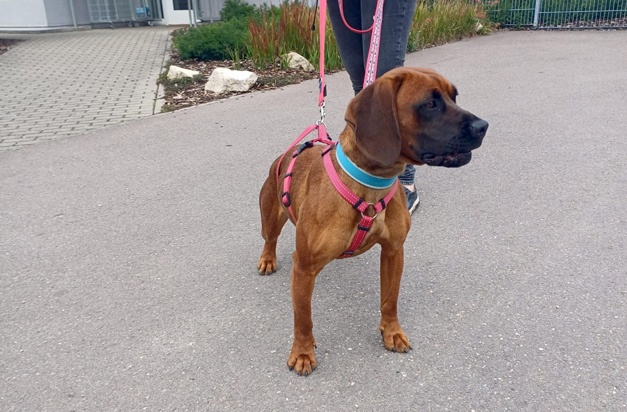 Das holt Maddy aber jetzt mit großer Begeisterung nach. Sie lernt schnell neue Kommandos und gewöhnt sich auch recht gut an neue Umweltreize.
