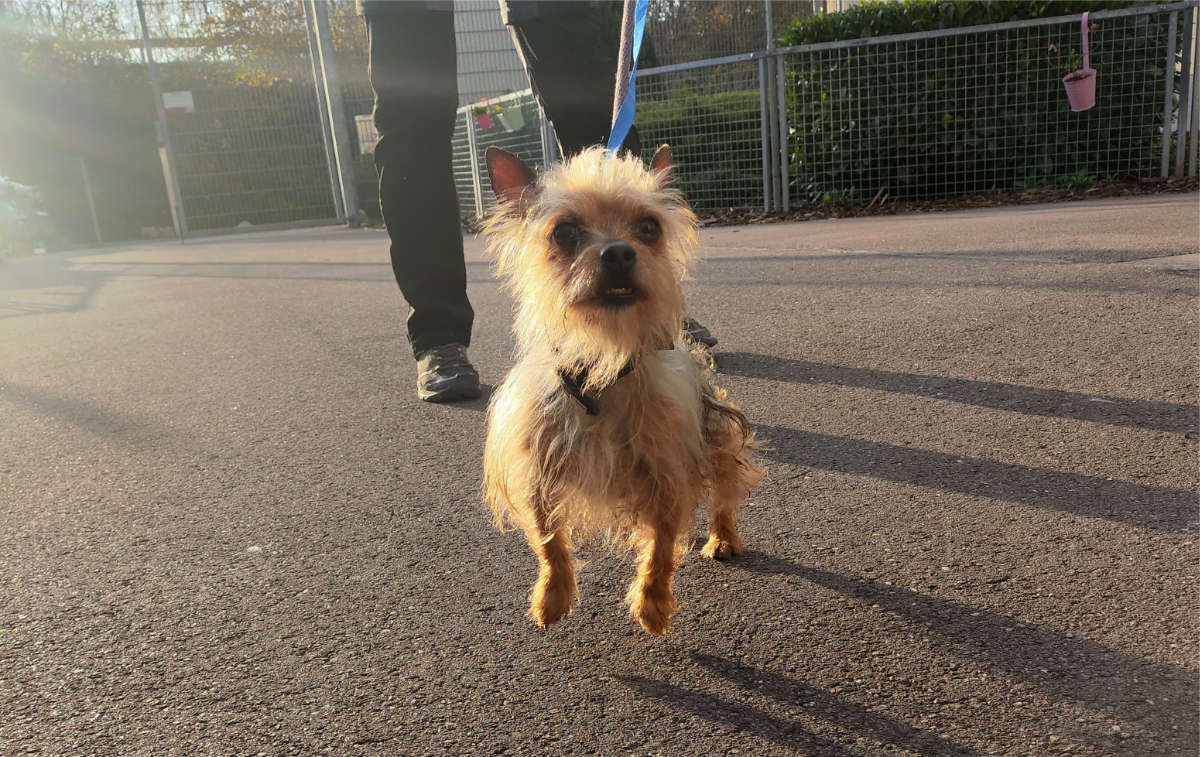 Max findet durchaus längere Spaziergänge spannend und mag unterwegs auch Hundekontakt.