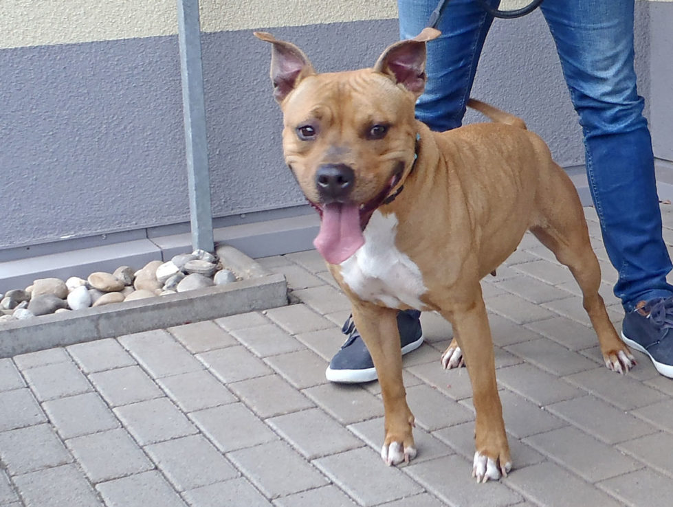 Mia ist eine freundliche American-Staffordshire-Mischlings-Hündin die 10.08.2015 geboren wurde. Sie wurde abgegeben da ihre ehemaligen Besitzer nicht mehr im Stande waren sie zu halten.