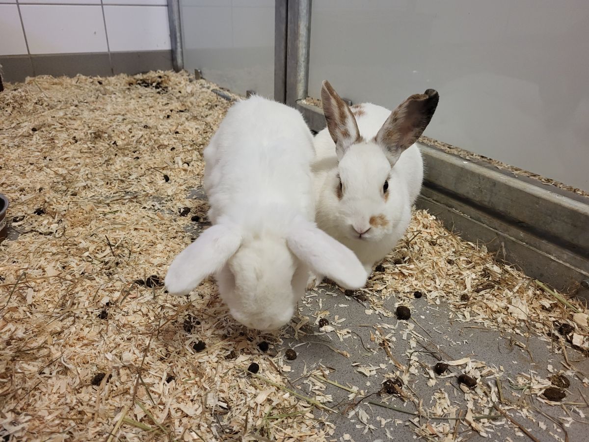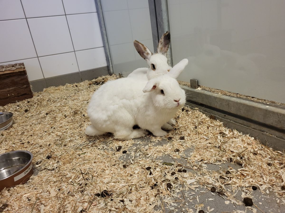 Snow & Layla Zwergkaninchenmännlich kastriert (weiß)weiblich unkastriert (weiß-braun)geboren: 2022 & 2024Innenhaltung: OK